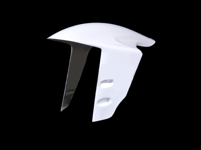 Guardabarros delantero para DUCATI PANIGALE 849/1199/1299 en fibra de vidrio flexible y ligera reforzada con fibra de carbono kevlar en zonas de alojamiento de tornillería.