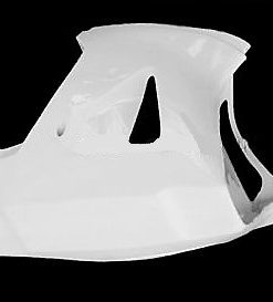 Primero y disponible en nuestra tienda online Kit carenado Pro en tres capas laminadas en fibra de vidrio flexible con refuerzos de fibra de carbono kevlar, acabados en gel coat blanco brillo RAL 9010.